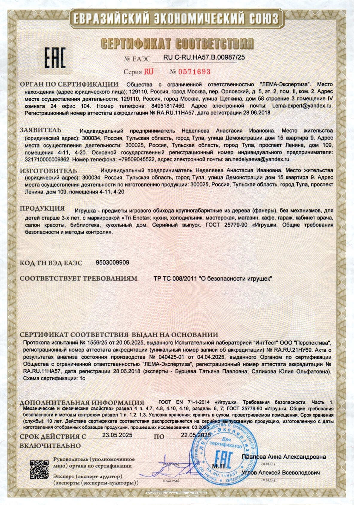 Безопасность детей — наш главный приоритет. Вся продукция Trienota проходит строгую сертификацию и соответствует государственным стандартам качества. Мы создаем мебель и игровые модули, которые не только развивают, но и полностью безопасны для здоровья.